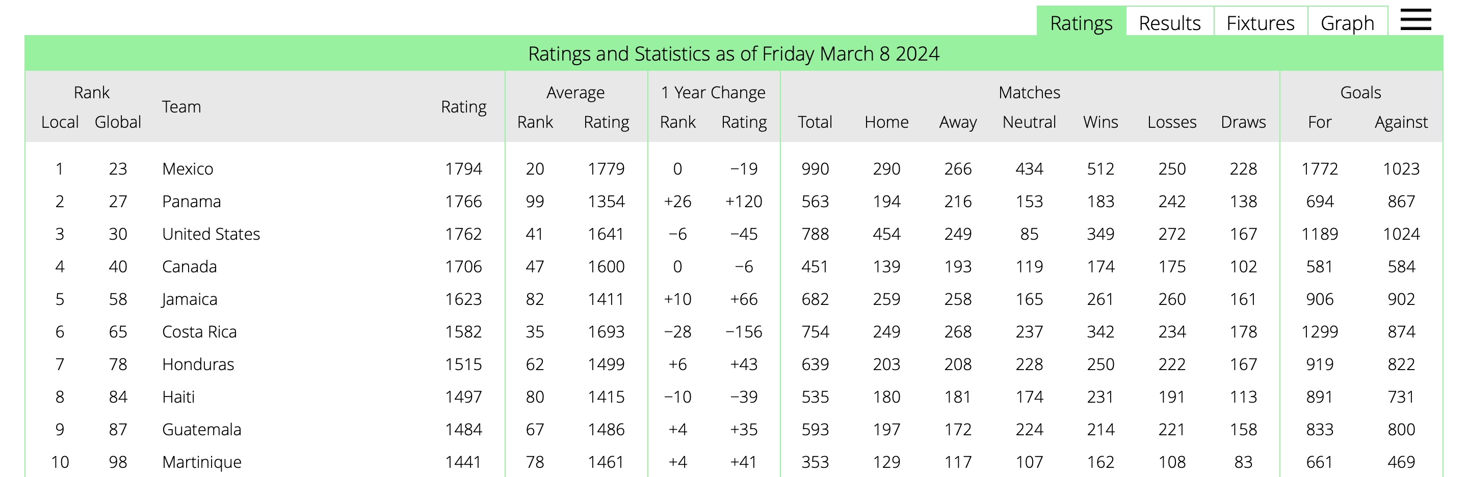 The Elo Ratings for CONCACAF currently rank the United States as the third-best team in the confederation behind both Mexico and Panama. Panama has had a string of excellent results of late, and the United States has had some poor results recently that push them below the Central American side. Jamaica sits far below the U.S. as the fifth best team in the region.